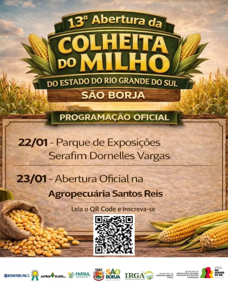 A Emater/RS-Ascar participa da 13ª Abertura da Colheita do Milho no Rio Grande do Sul, que acontece na próxima semana (22 e 23/01), em São Borja, reunindo autoridades, produtores rurais, técnicos, pes...