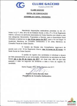 End. Rua Dez de Novembro, nº 581 - Oliveira - Santo Ângelo – RS.