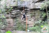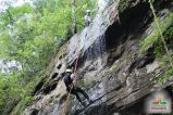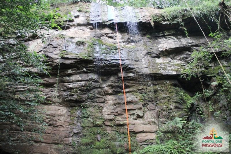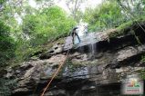 Cascata perfeita para a prática de cascading (rapel na cascata) e trilhas ecológicas. O aventureiro desce de rapel uma parede de pedra de 14 metros, com uma refrescante e suave água corrente.